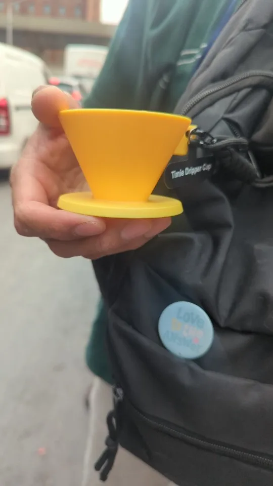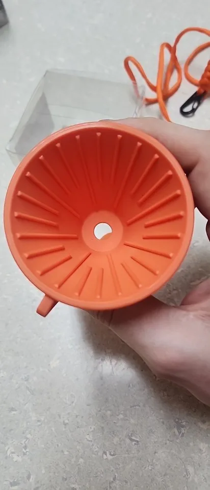 Excellent product, I thought it would be mostly some soft material but only the piece that seals the v60 is rubber, very good material, it doesn't leak and you only need to adapt a paper filter, very nice as a cup and keychain 10/10.