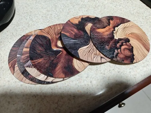 Bring elegance to your coffee moments with these handcrafted wooden coasters, featuring natural wood grain and subtle swirl patterns. Designed for modern homes, offices, and bar settings, they blend durability with refined style.