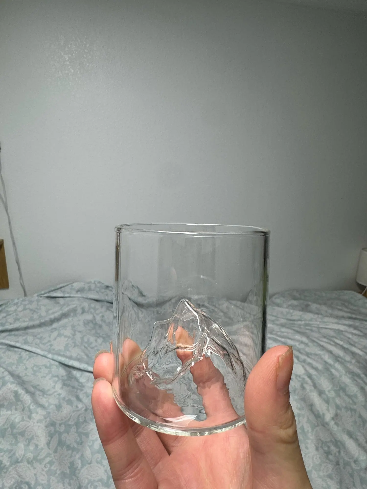 Experience Japanese craftsmanship with this stunning glacier mountain glass cup featuring a beautiful Mt. Fuji design molded into the base.